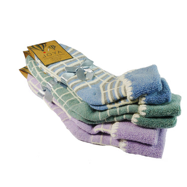 3 pairs of checked cuff socks in purple, teal green and duck egg blue