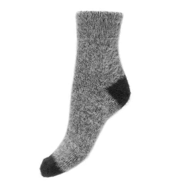 Indulge in luxurious comfort with these grey wool-blend ladies socks with contrasting black heel and toe - so warm and comfortable you can wear them all day!