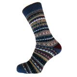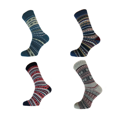 4 pairs of Nordic patterned soft wool blend socks in blue and red tones - ideal to keep feet warm in boots or shoes and perfect for gifting.