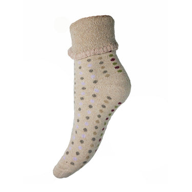 Fawn cuff socks with multi coloured dots make a lovely addition to any wardrobe. Thick and warm, they're perfect for lounging around the house or wearing under boots. Be sure to machine wash at 30 degrees and avoid tumble drying.