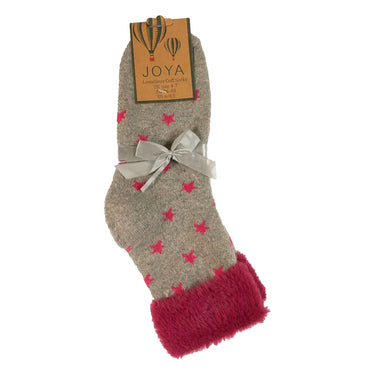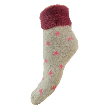 Snuggle up in our soft and cozy grey cuff socks with pink stars and a faux fur cuff! These stylish socks will keep your feet deliciously warm and comfy all day and night.