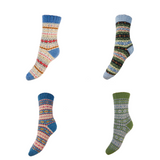 4 pairs of our soft blue and green Fairisle socks, beautifully packaged in a recycled cardboard box.