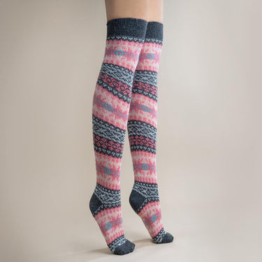 Grey and pink Scandi patterned over-the-Knee Wool Blend Socks