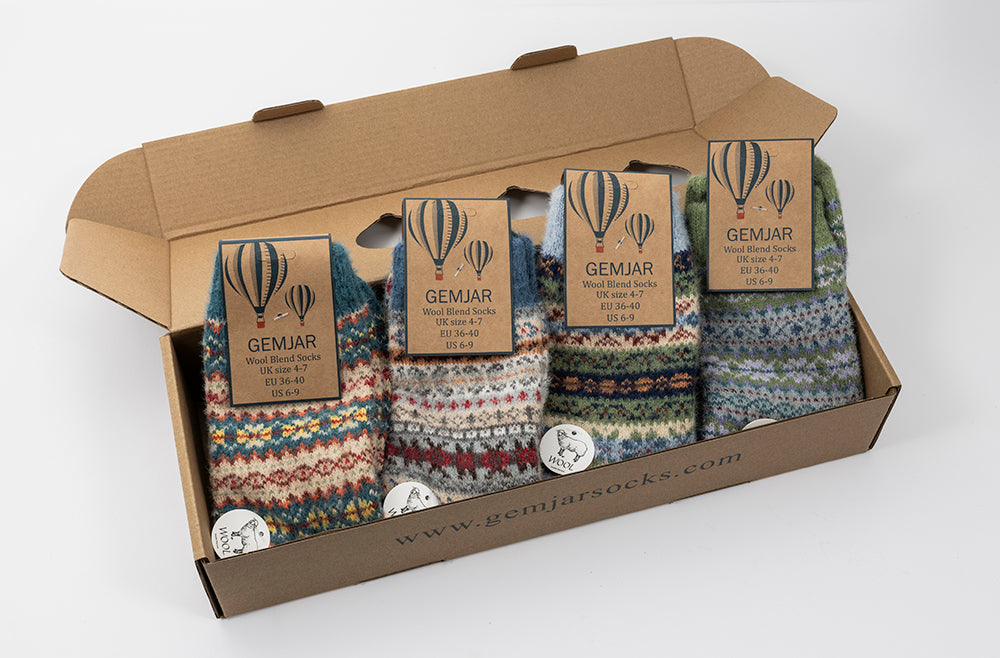 Take the uncertainty out of gifting with our specially chosen selections of 4 pairs of socks, beautifully presented in a recyclable gift box. Available in sizes 4-7 or 8-12