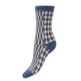 3 pairs of blue geometric, fawn ribbed and blue grid wool blend socks