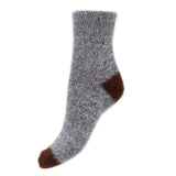 Luxuriously soft grey socks featuring a stylish contrast of brown at the heel and toe.