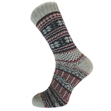 4 pairs of Nordic patterned soft wool blend socks in blue and red tones - ideal to keep feet warm in boots or shoes and perfect for gifting.