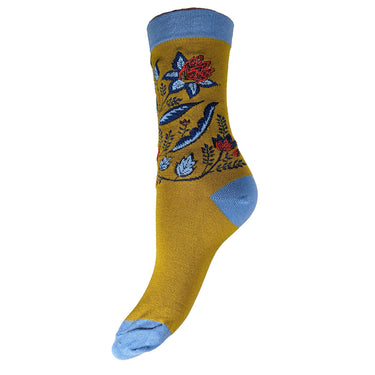 Mustard Floral Bamboo Socks