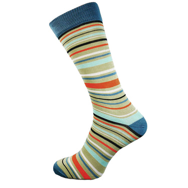 Pale multi coloured stripe bamboo sock with grey heel and cuff