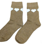 Mustard Wool Blend socks with cream fluffy Hearts size 4-7