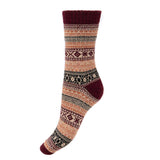 Fine knit, smooth seams, with a dark red Fairisle pattern, these socks are easy to wear and durable!