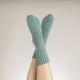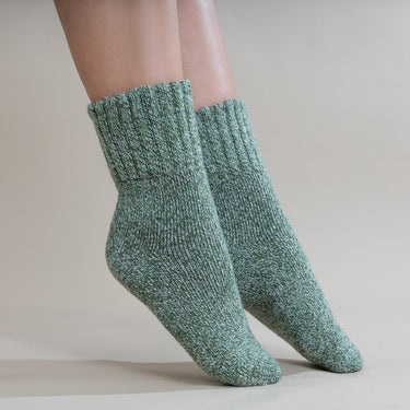Green marl thick wool blend socks with ribbed cuff