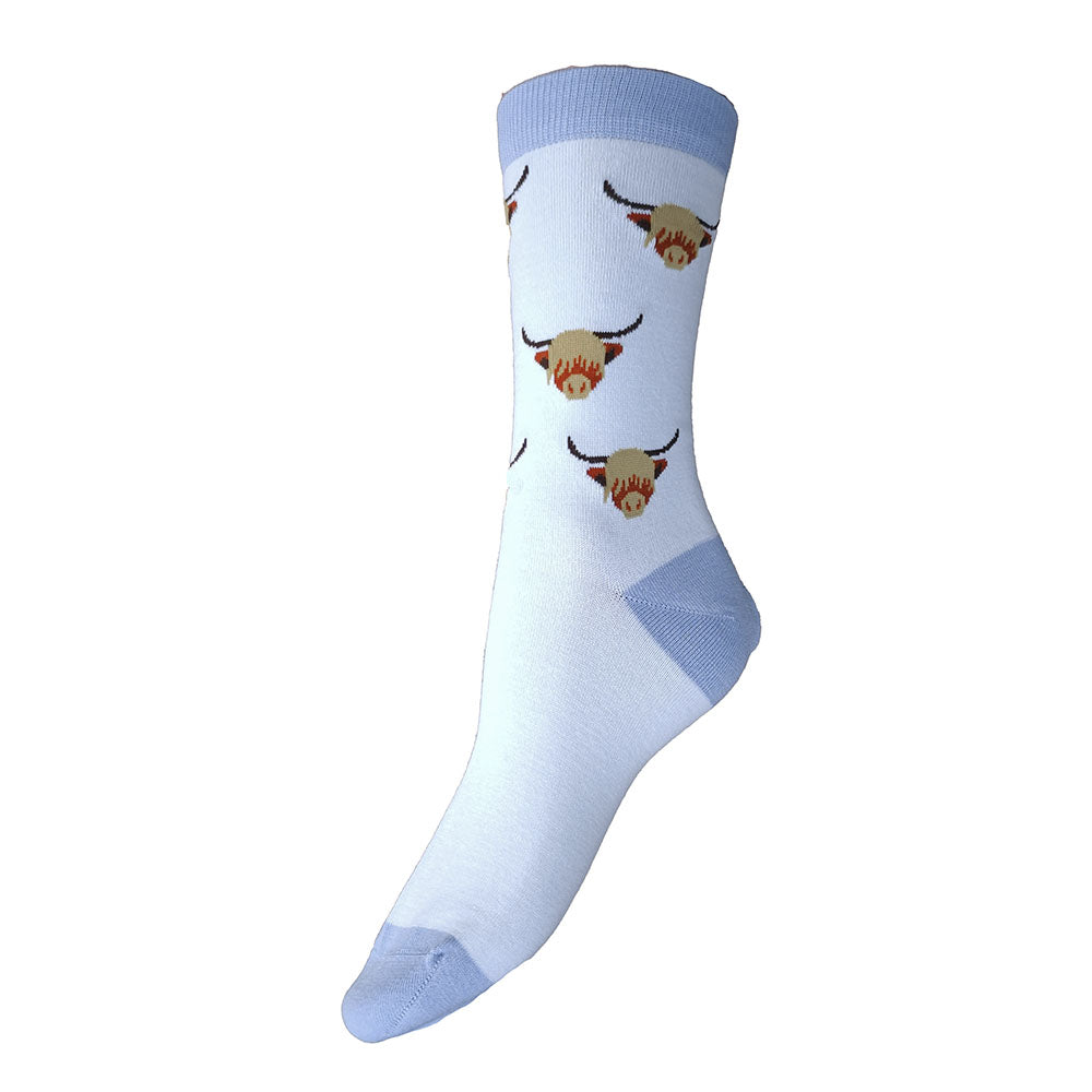Pale blue Highland Cow Face Ladies' Bamboo socks