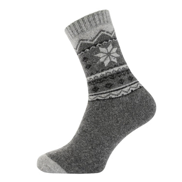 Grey winter pattern wool blend socks