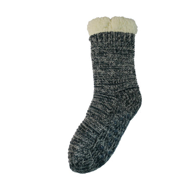 Blue ribbed fleece lined cable knit slipper socks