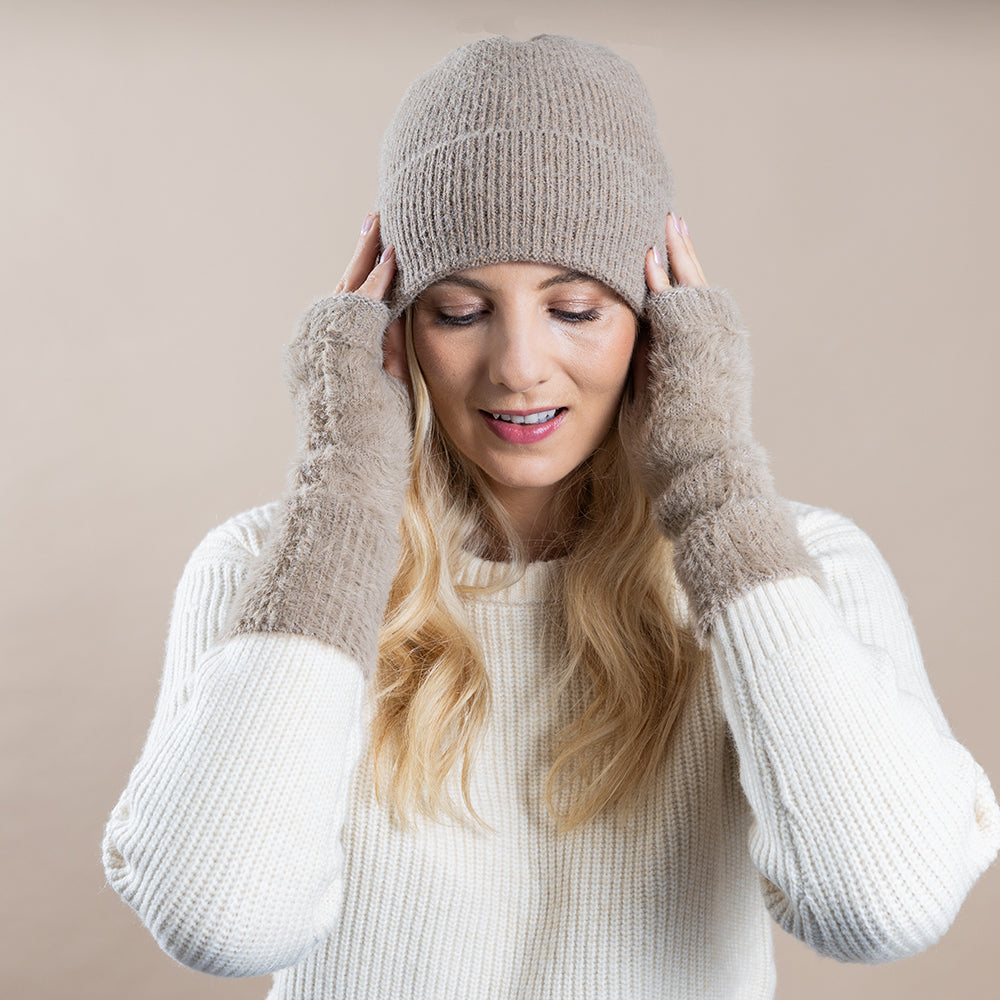 This ultra-comfy, fawn wool blend hat offers the perfect warmth with its soft fleece lining - just the thing for staying cozy.