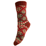 Soft and warm, these brown and red diamond patterned woolly socks will keep you comfortable all day.
